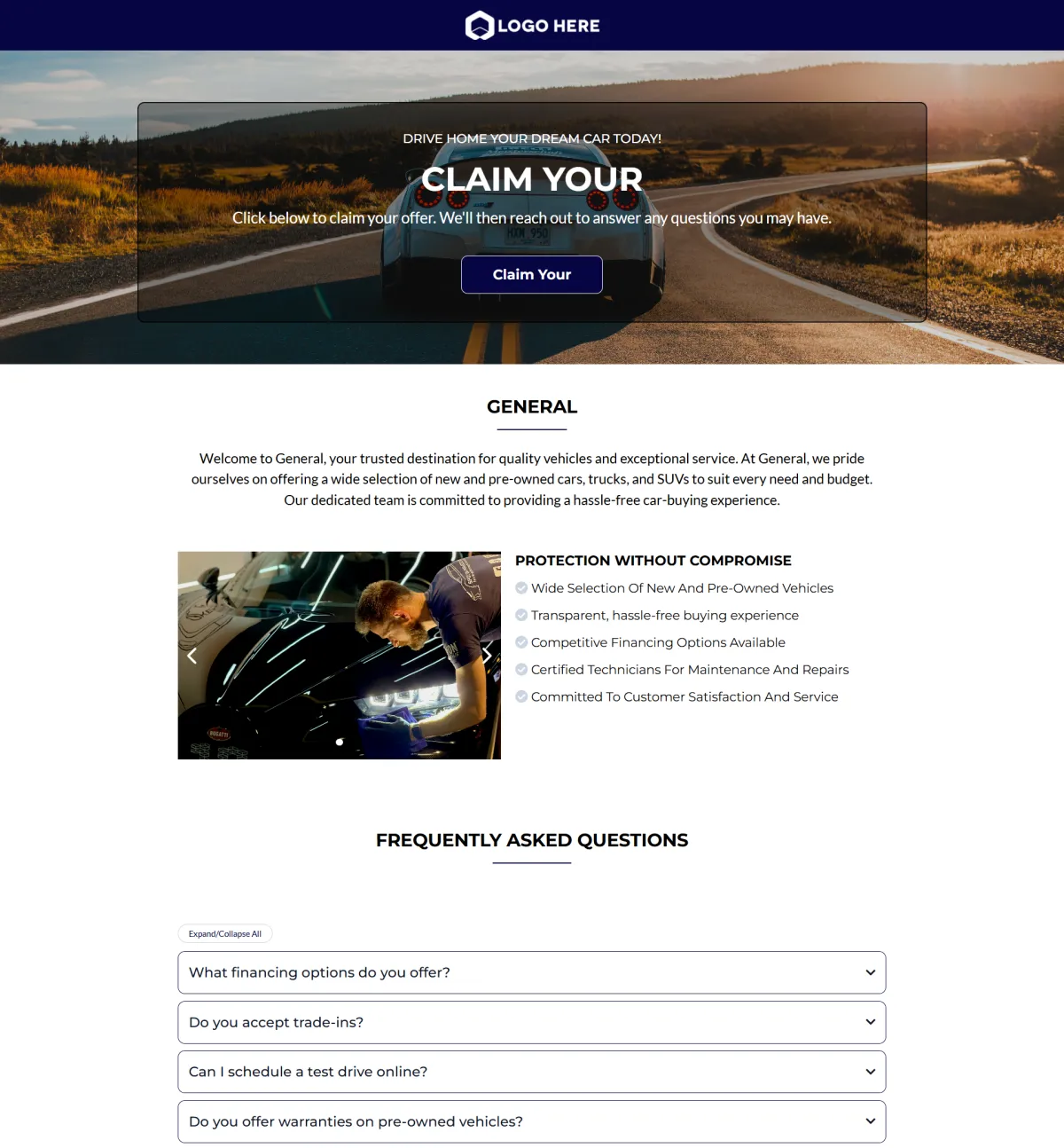 Contact form connected to CRM (to keep track of all of your customers in one place even if they call… email… text… Facebook… Instagram and more, all in one tidy page)